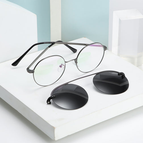 2 In 1 Sunglasses For Men Black Round Polarized/Clear Lens Sunglasses High Quality Fashion Driving Glasses UV400 Metal Shades