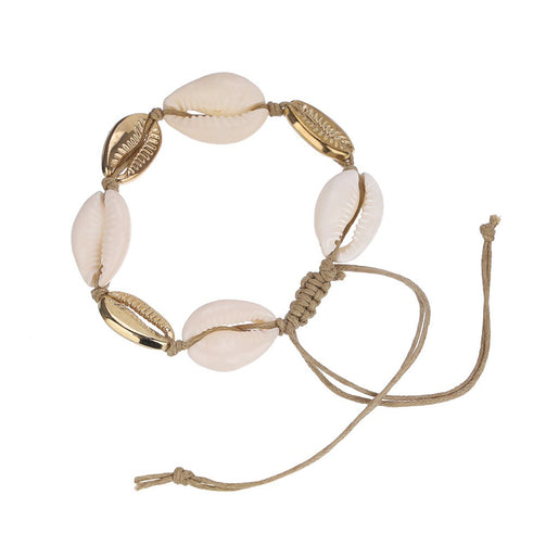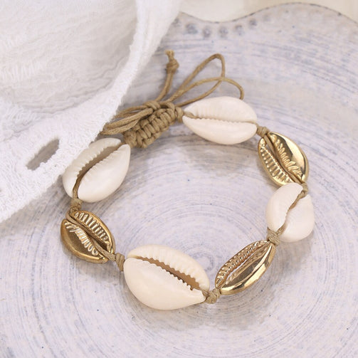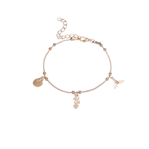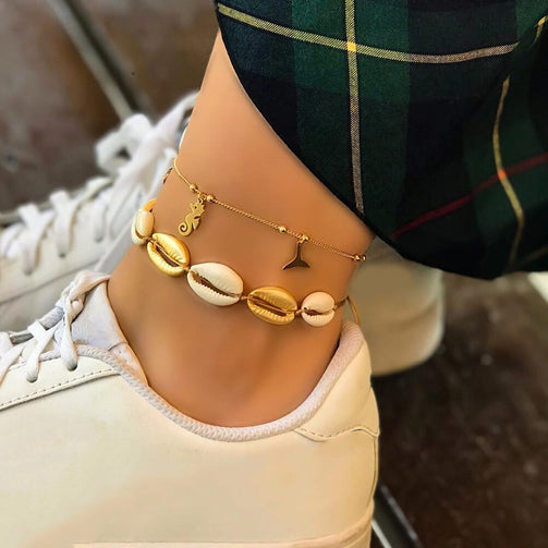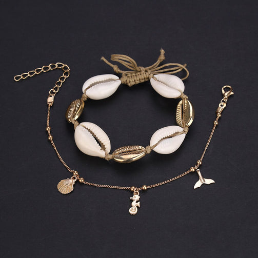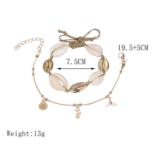 2 Pcs/set Women Fashion Shell + Gold Fishtail Anklet Set