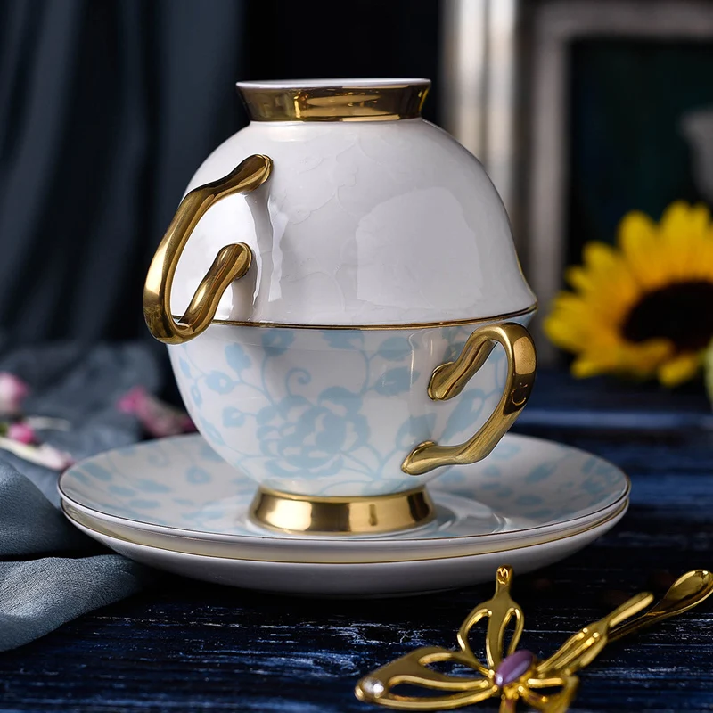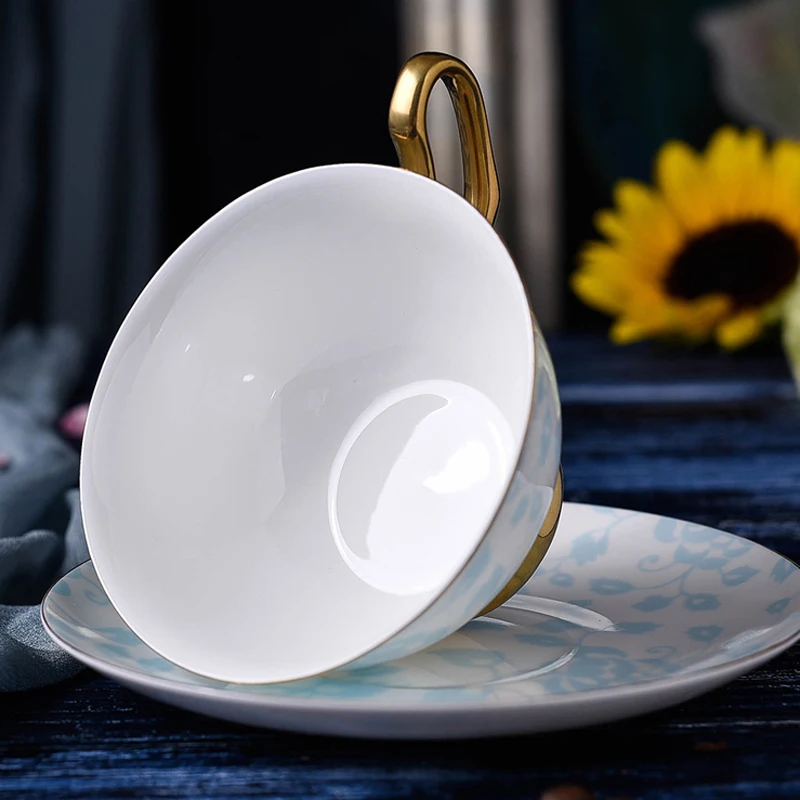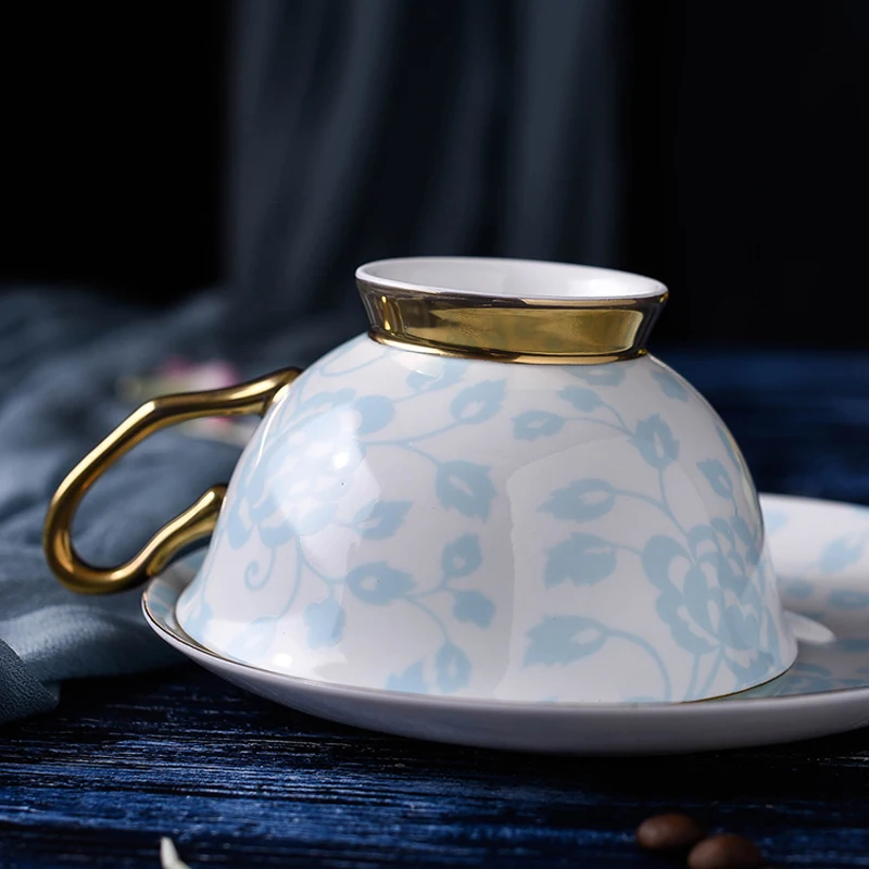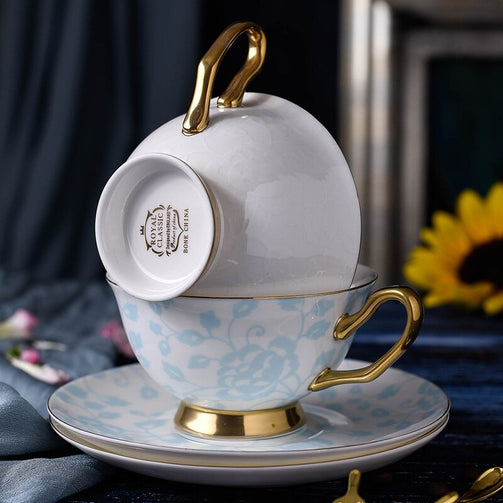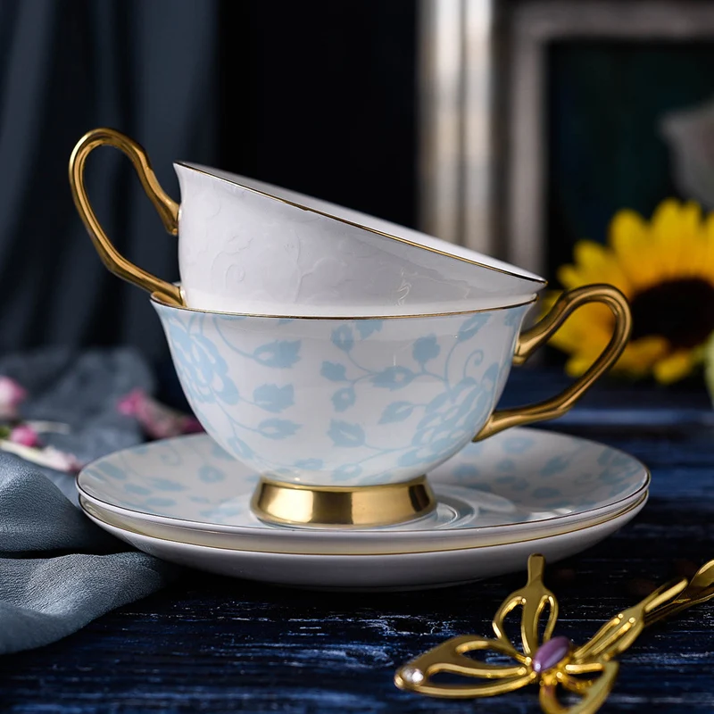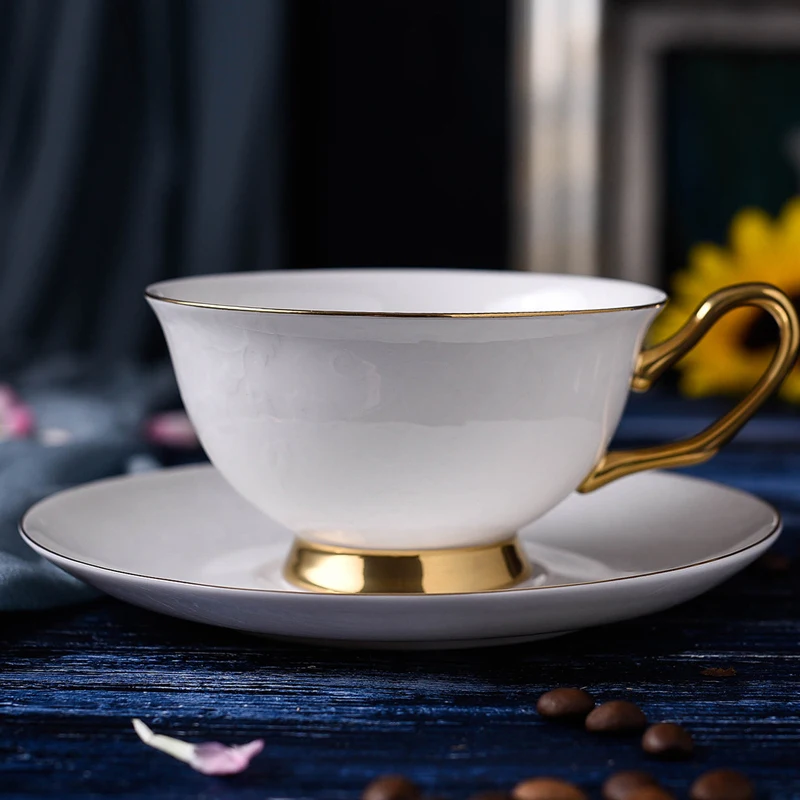 200ml Porcelain Teacups Fine Bone China Tea Cup and Saucer Set British Style Luxury Ceramic Coffee Cups Holiday Gifts 2 Colors