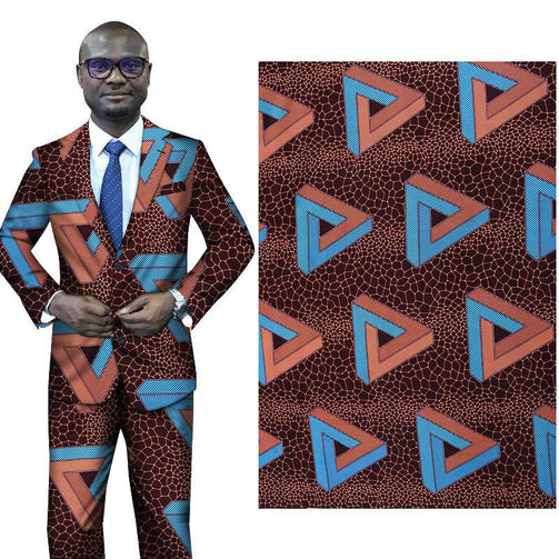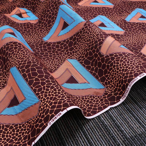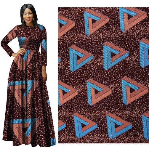 Brown Spring Triangular Pattern Polyester African Prints Ethnic Garment Fabric