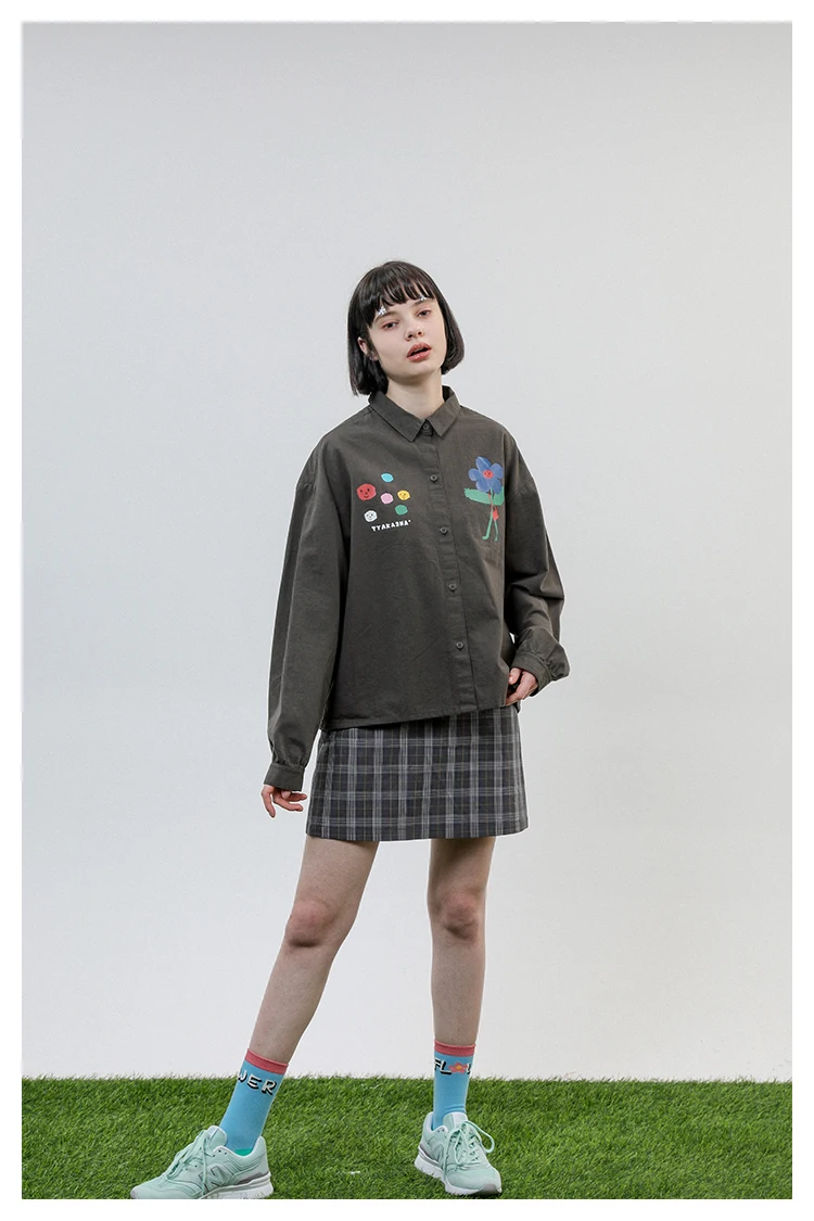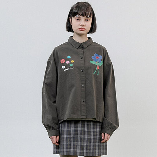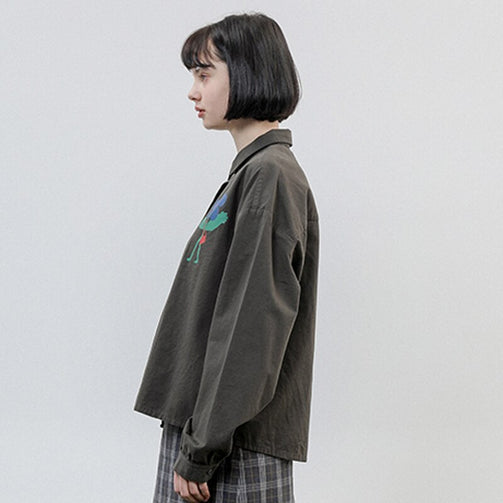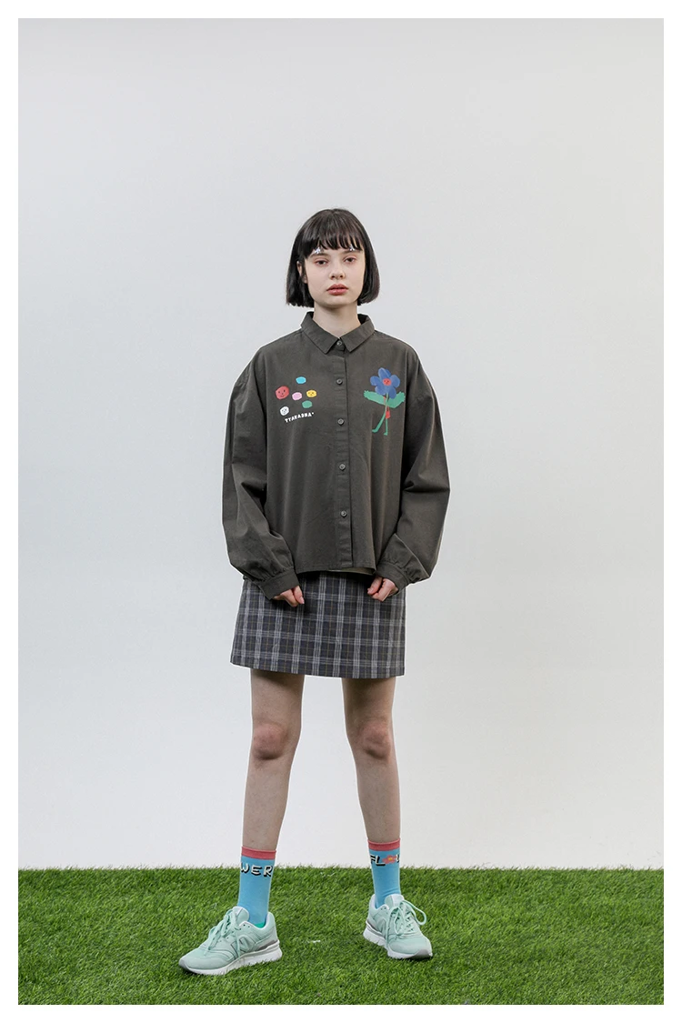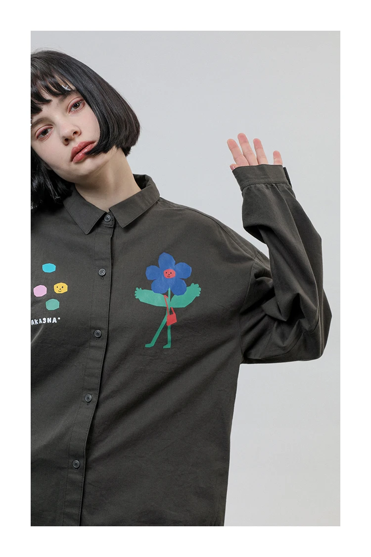 2019 New Design Spring Women Brown Blouse Long Sleeve Turn Down Collar Ladies Loose Shirt Tops Blouses Flowers Print