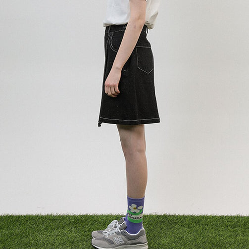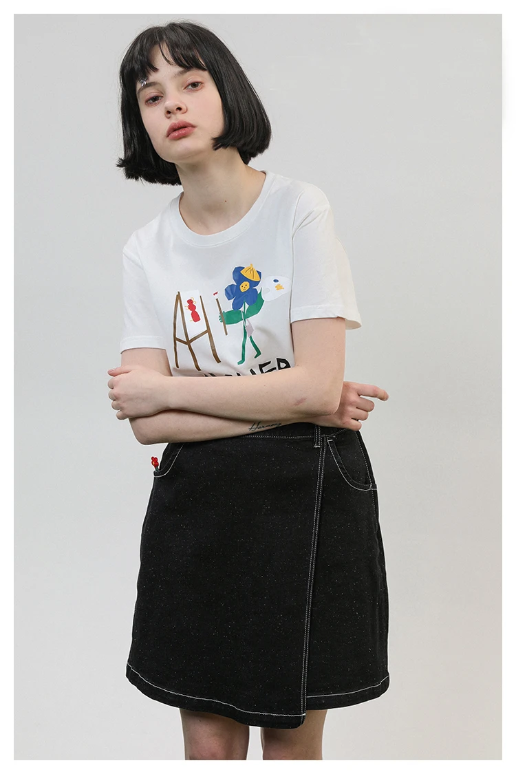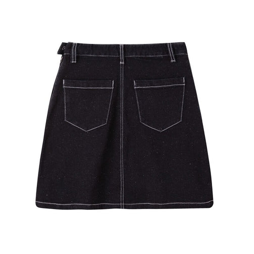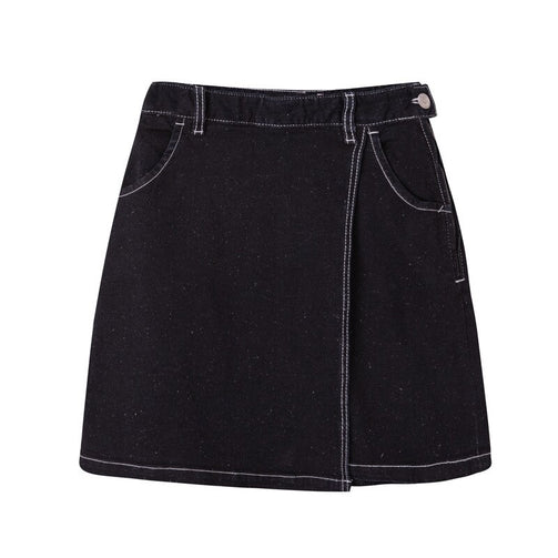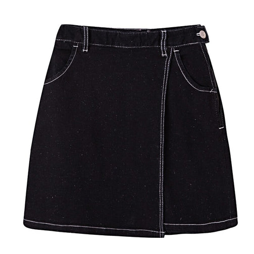 2019 Summer Womens Ladies A-line Pencil Denim Min Skirt High Waist Jeans Harajuku Pockets Skirt Black White High Quality