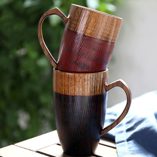 2 x Wooden Coffee Mugs (1 Black, 1 Red)