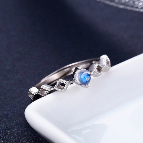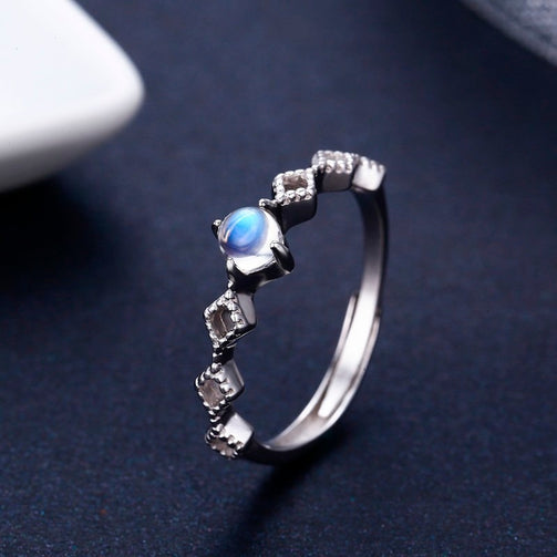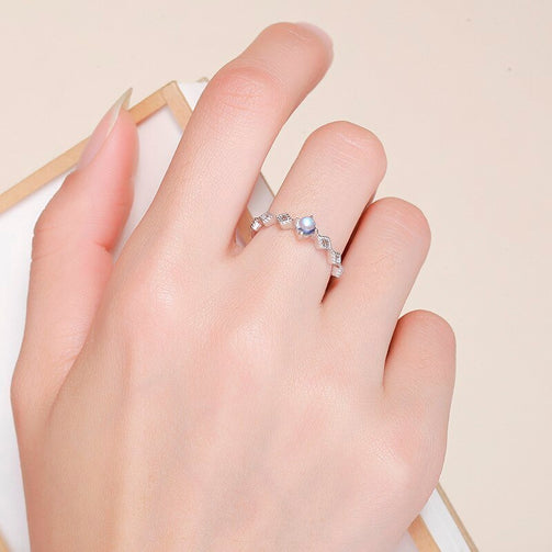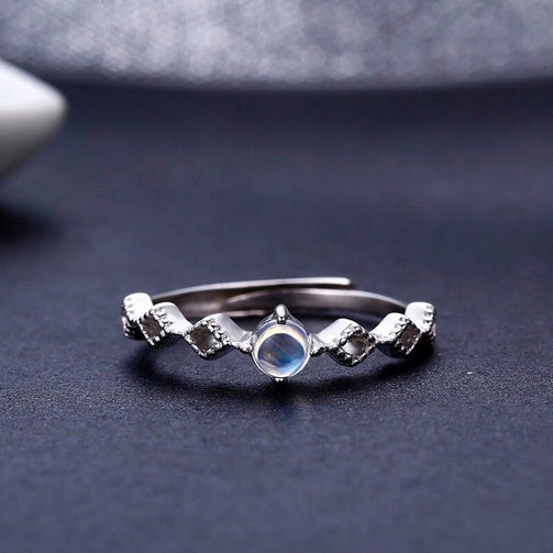 925 Sterling Silver Round 7A Natural Moonstone Band Rings For Women