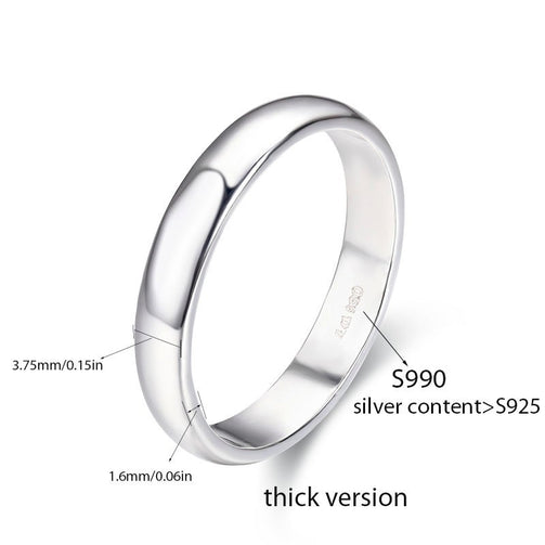 990 Pure Sterling Silver D Shape Thick Band Rings For Women