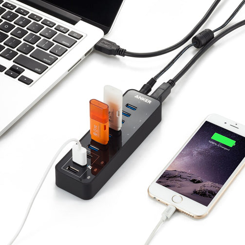 Anker 10 Port 60W Data Hub with 7 USB 3.0 Ports and 3 PowerIQ Charging Ports for MacBook,iPhone, iPad,Galaxy Serie,Mobile HDDetc