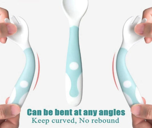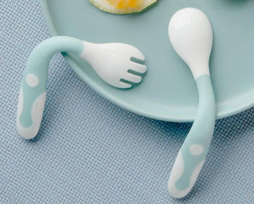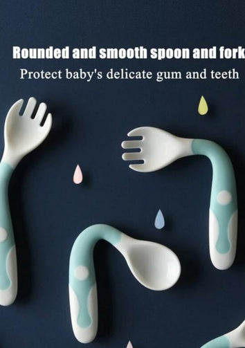 The baby feeding spoon and fork flexible, this design is more convenient for baby to learn how to use tableware.