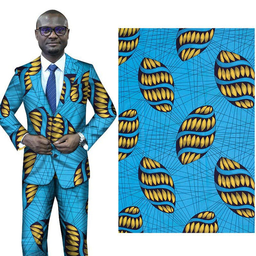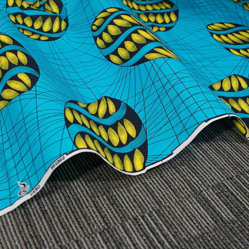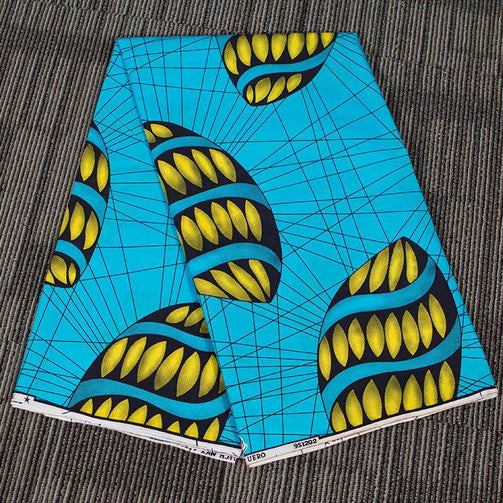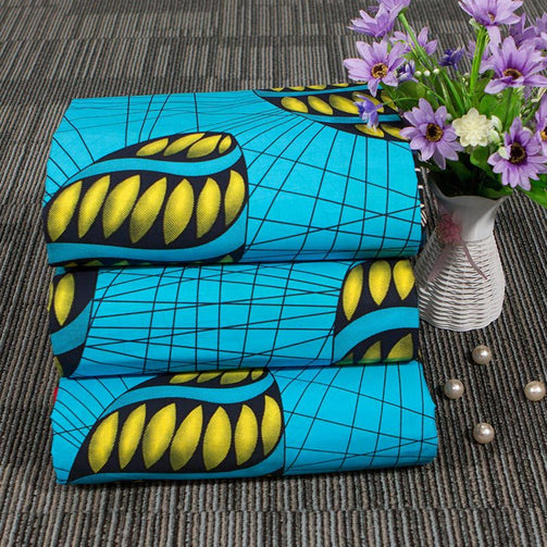 Blue Yellow Shell African Prints Ethnic Garment Fabric