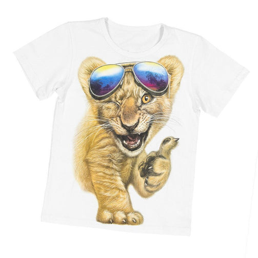 Cat Animal Print White O-neck Short Sleeve Boys Tshirt