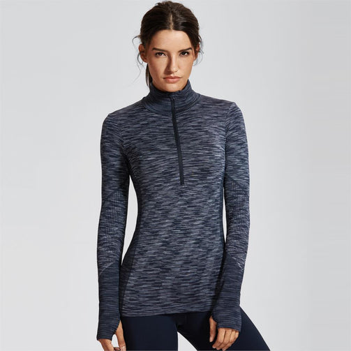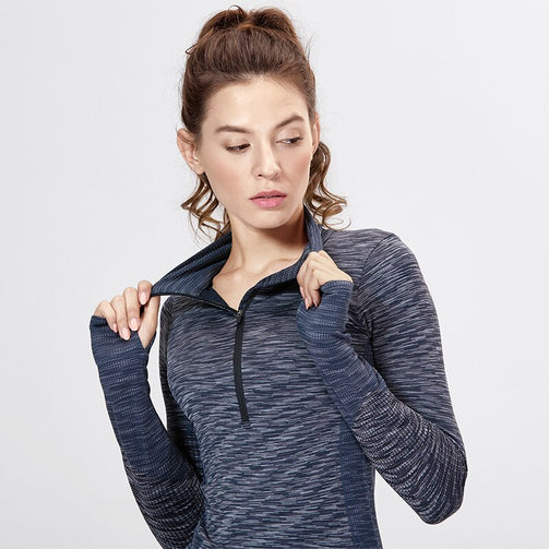 YOGA Women's High Neck Pullover Seamless Active Long Sleeve Sports Running Top with Thumbholes