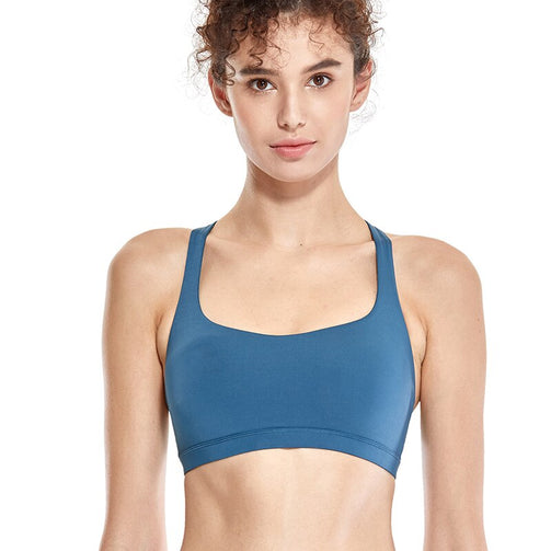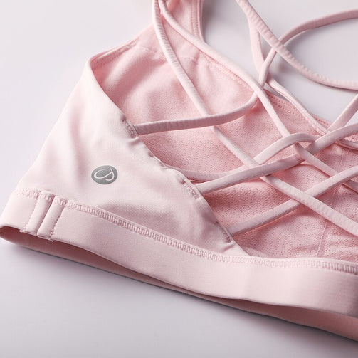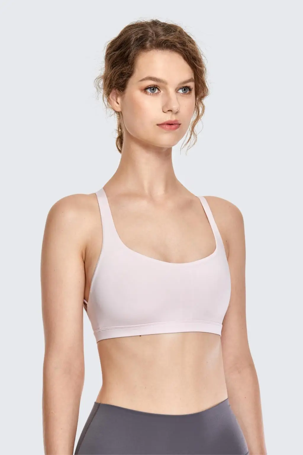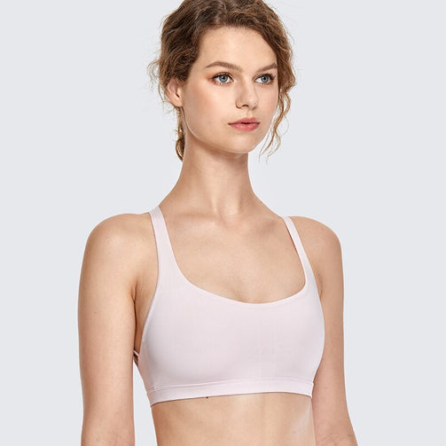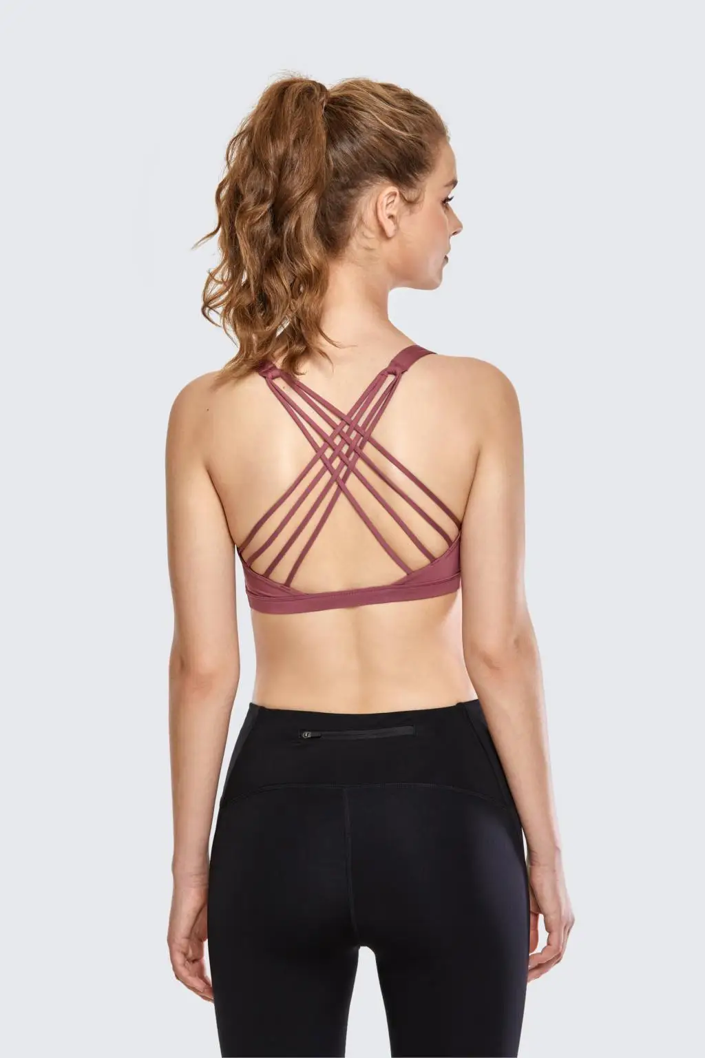 Women's Light Support Removable Caps Strappy Wirefree Yoga Sport Bra
