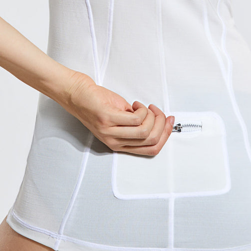 This swim top made of UPF50+ rated fabric, wicking and breathable;