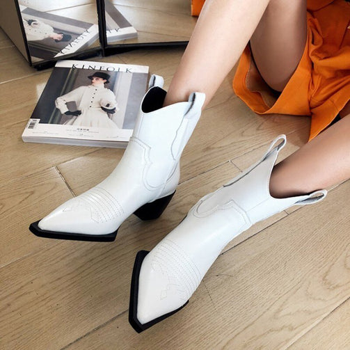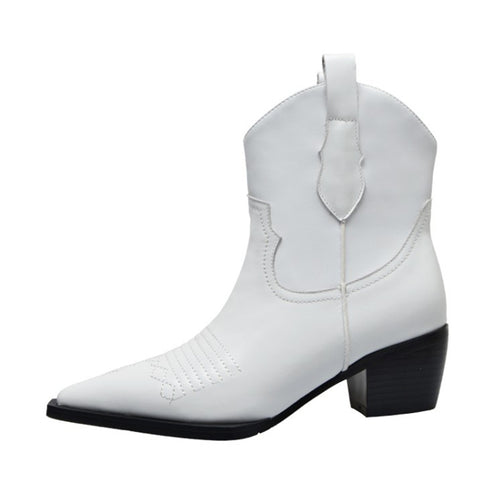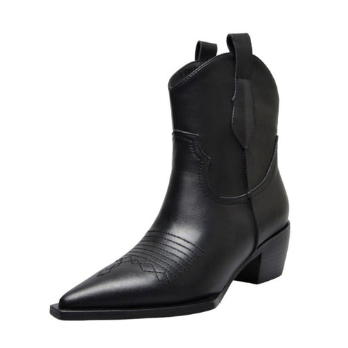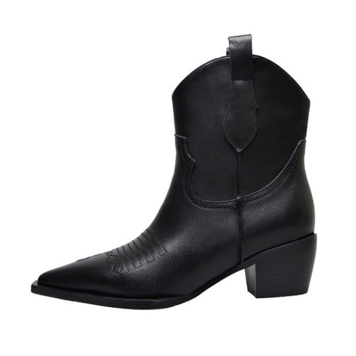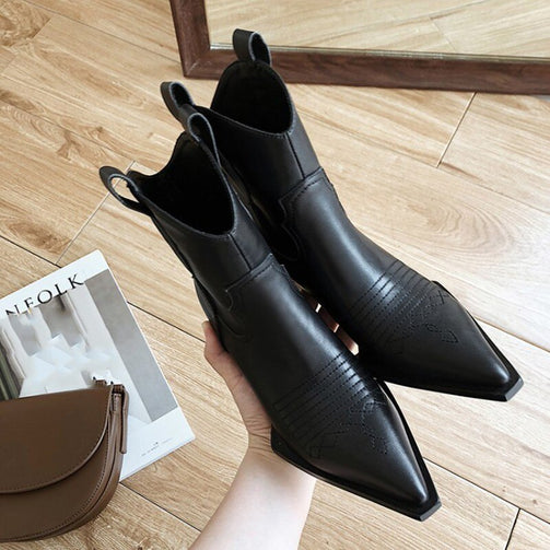 Autumn Winter Sharp Toe Zipper Pu Leather Boots