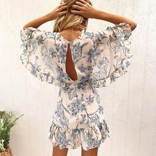 Deep V-Neck Sexy Women Mini Batwing Sleeve Dress