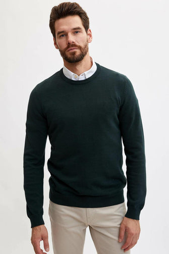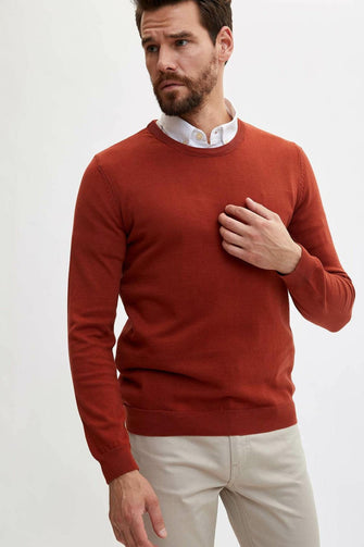 Man Crew Neck Fashion Pure Color Slim Pullovers