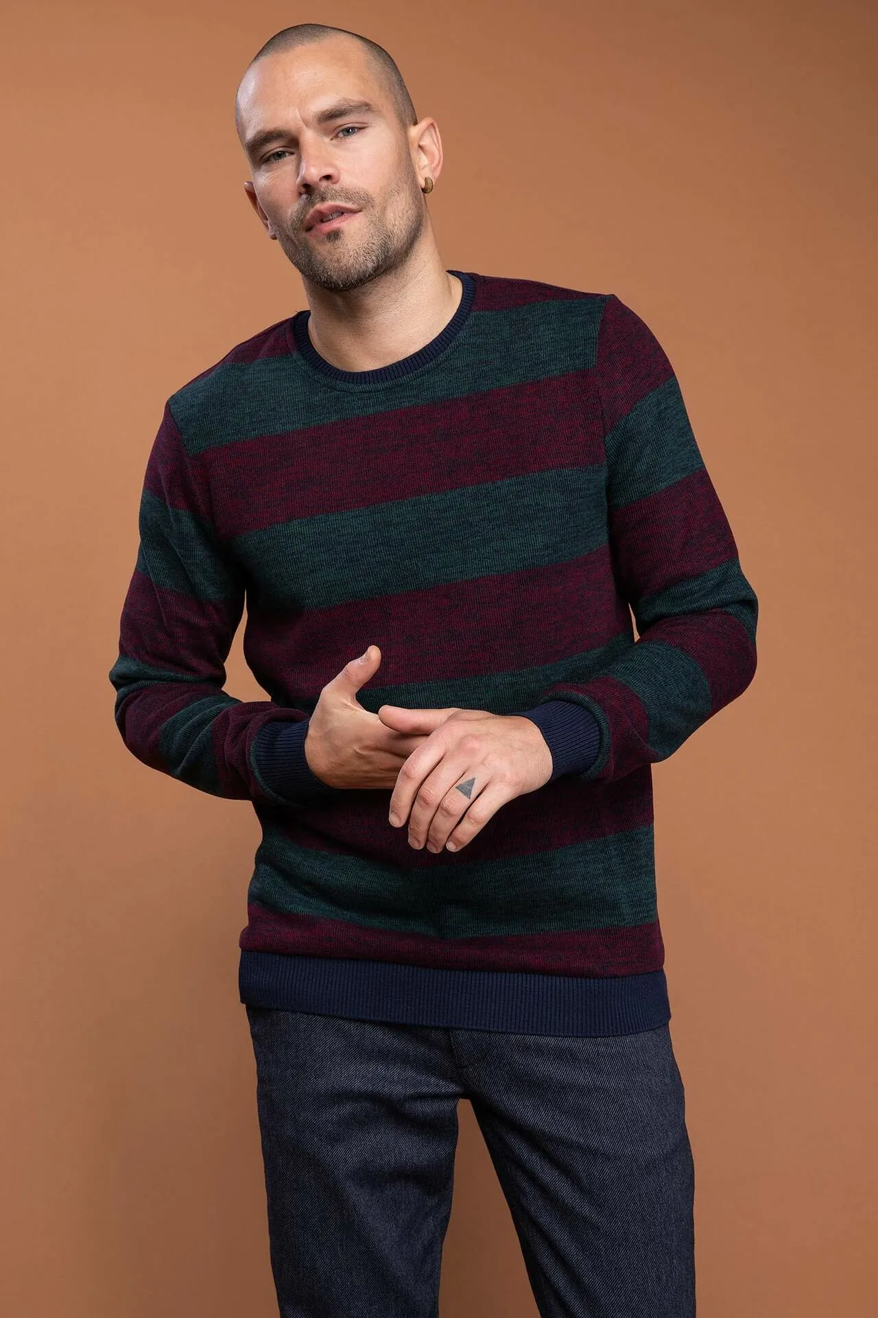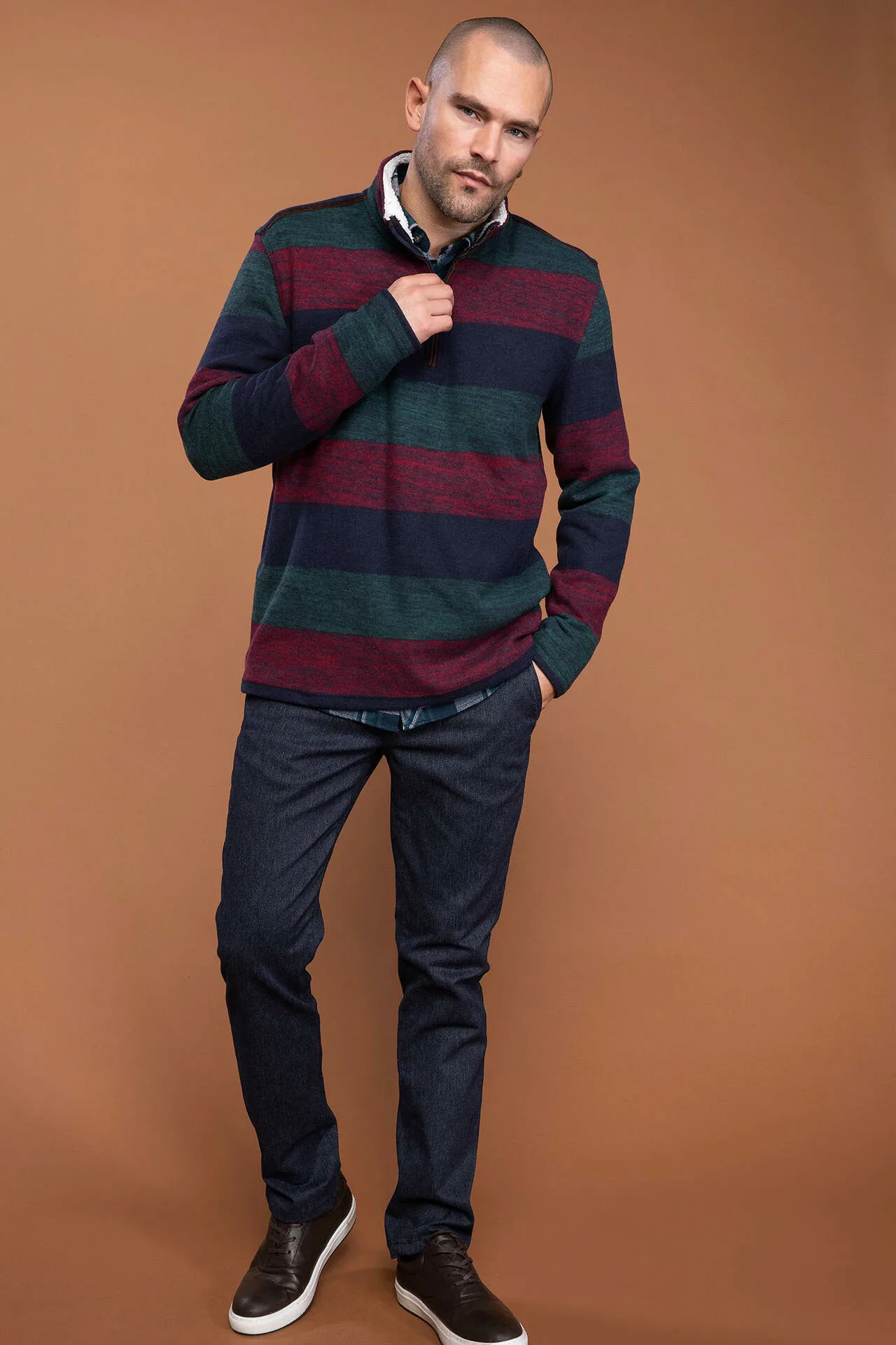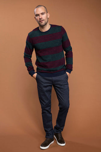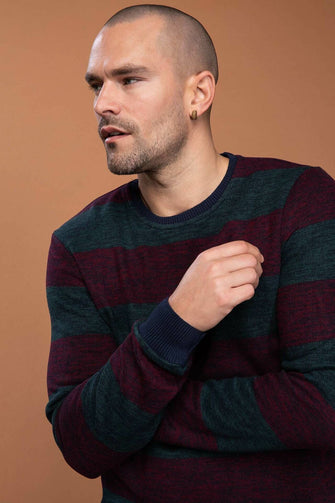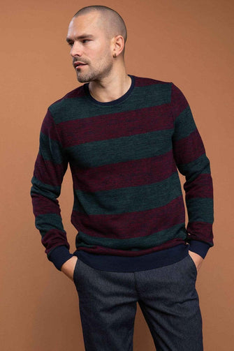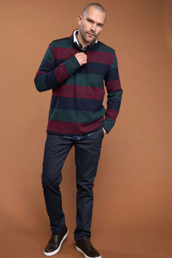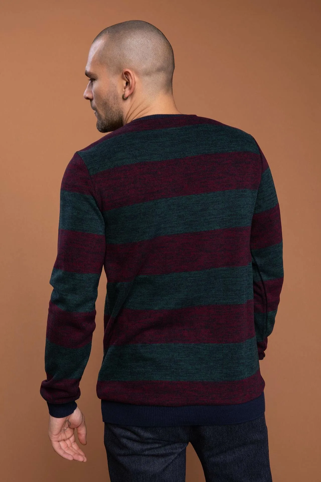 Knitted Mixed Color Striped Men's Sweat Shirt