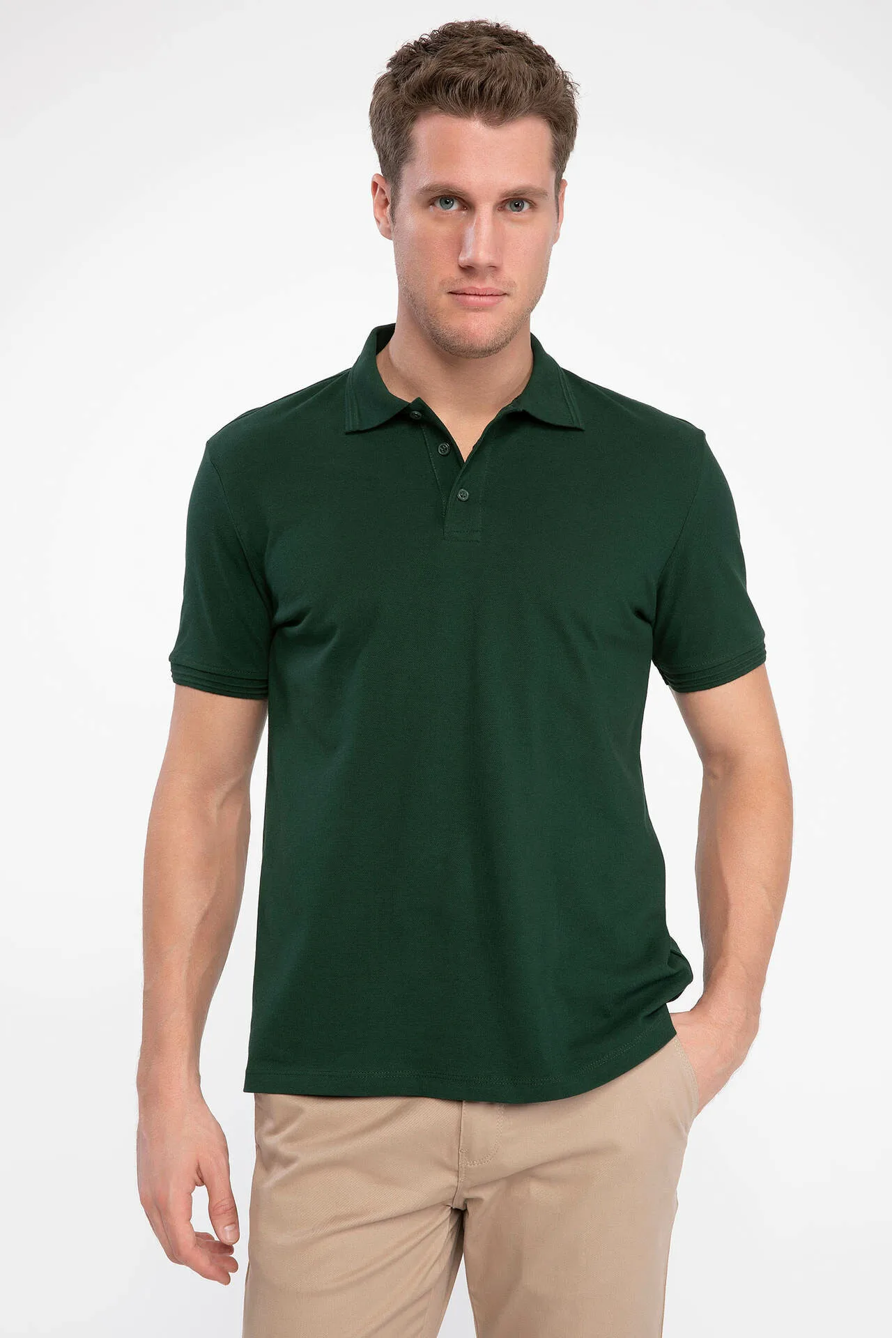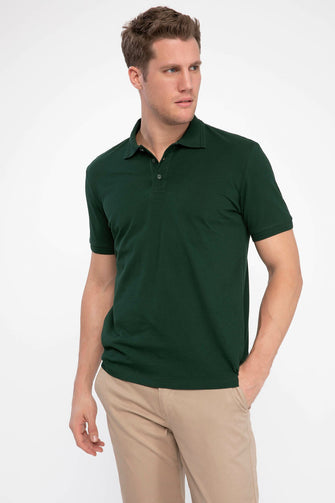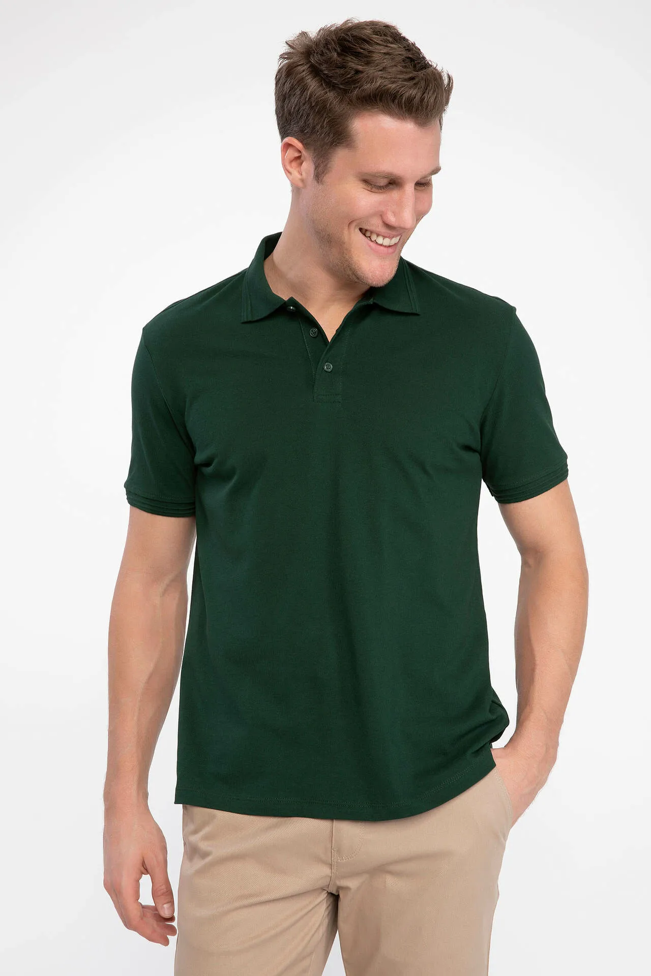Summer Dark Green Mens Short-Sleeved Solid Color Polos Shirts