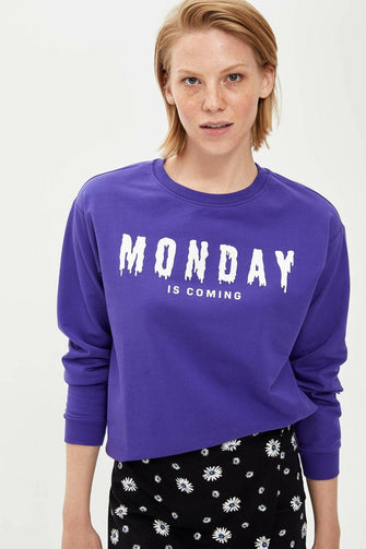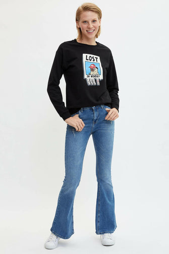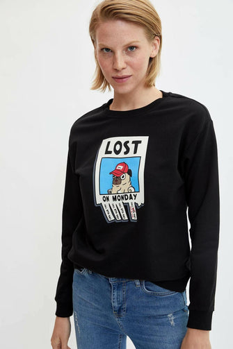 Letter Pattern O-neck Long Sleeve Women Pullover