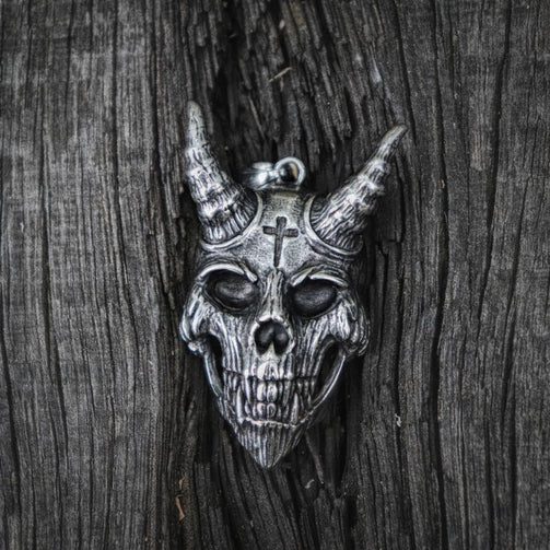 Gothic Devil Cross Stainless Steel Skull Pendant Necklace Biker Style Jewelry