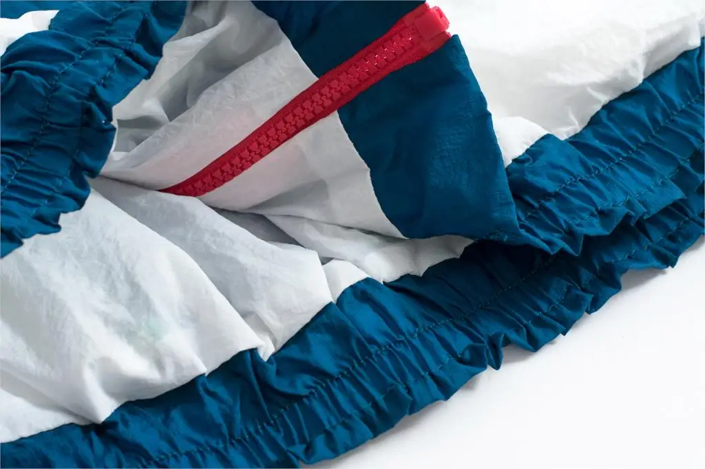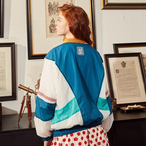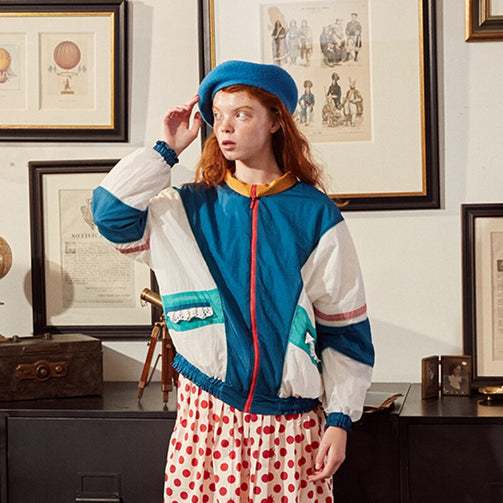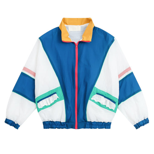 Fashion 2018 Autumn New Women Basic Jackets Stand Collar Zipper Lace Pockets Loose White Blue Patch Designs Femme Coat Outwear