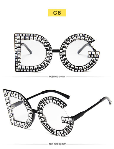 Fashion Crystal Diamond Round Oversized Sun glasses Brand Luxury DG Sunglasses Ladies Fashion Sunglasses for Women Party