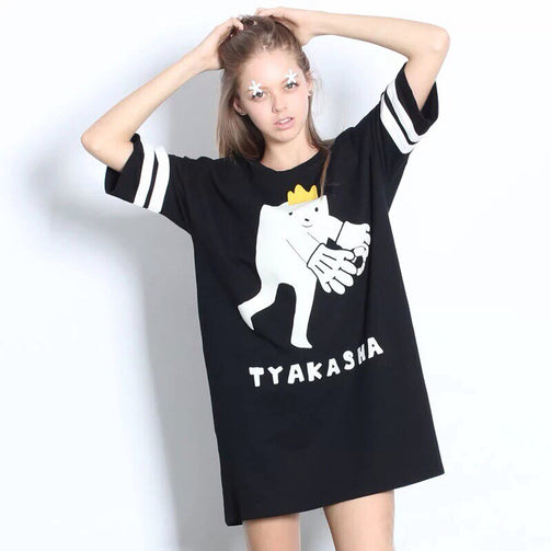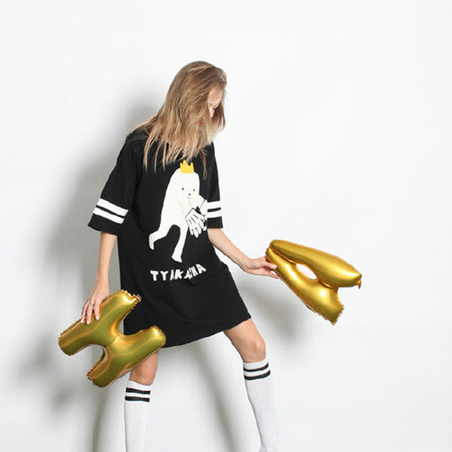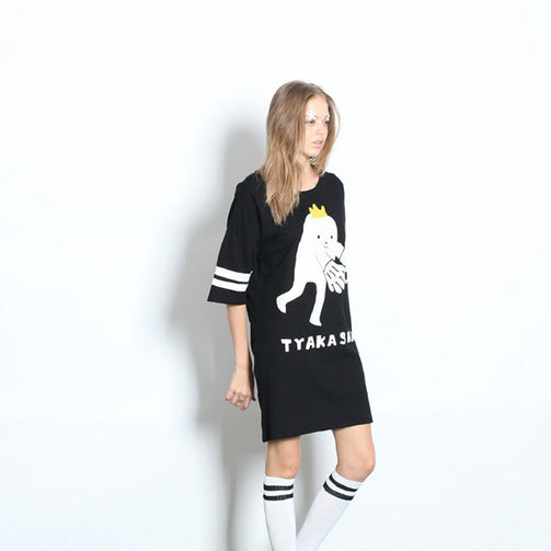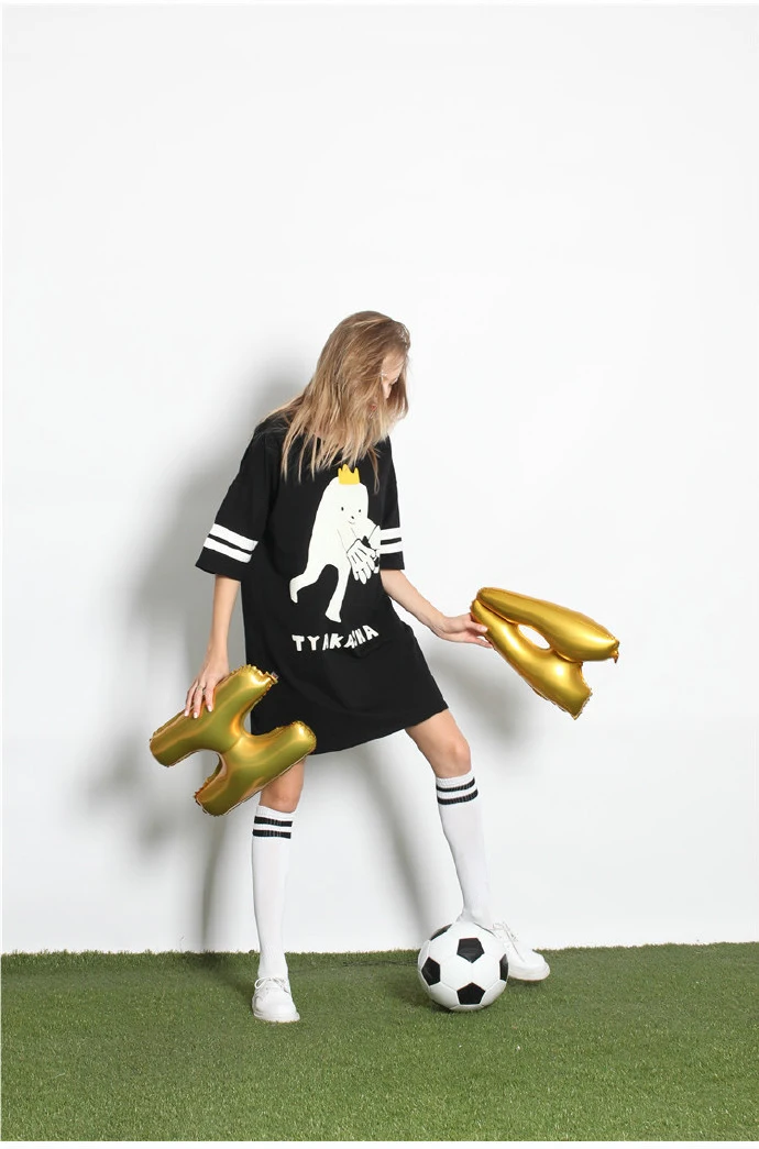 Fashion Design New Women Summer Dress Cute Football Baby Printed Casual Loose Femal Black Dresses High Quality Short Sleeve