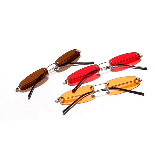 Fashion Rimless Small Sunglasses Summer Rectangular Narrow Sun Glasses For Men Women Red Blue Black Shades Sunglasses Eyewear