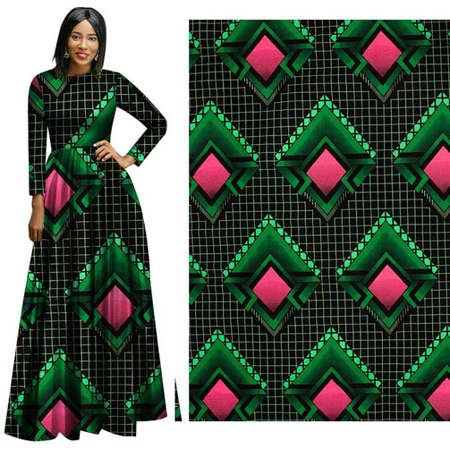 Green 3D Geometric Printed African Prints Ethnic Garment Fabric