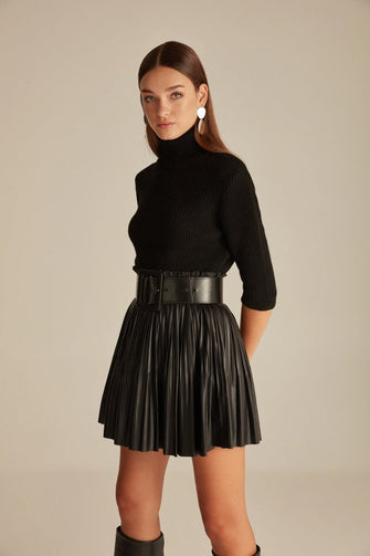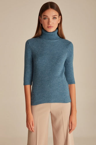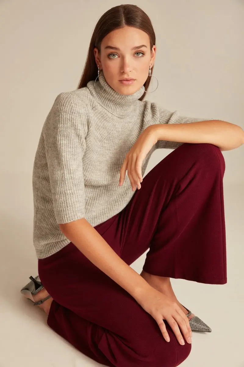 3/4 Sleeve Knitted Jumper With Roll Neck Woman Grey Heather