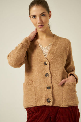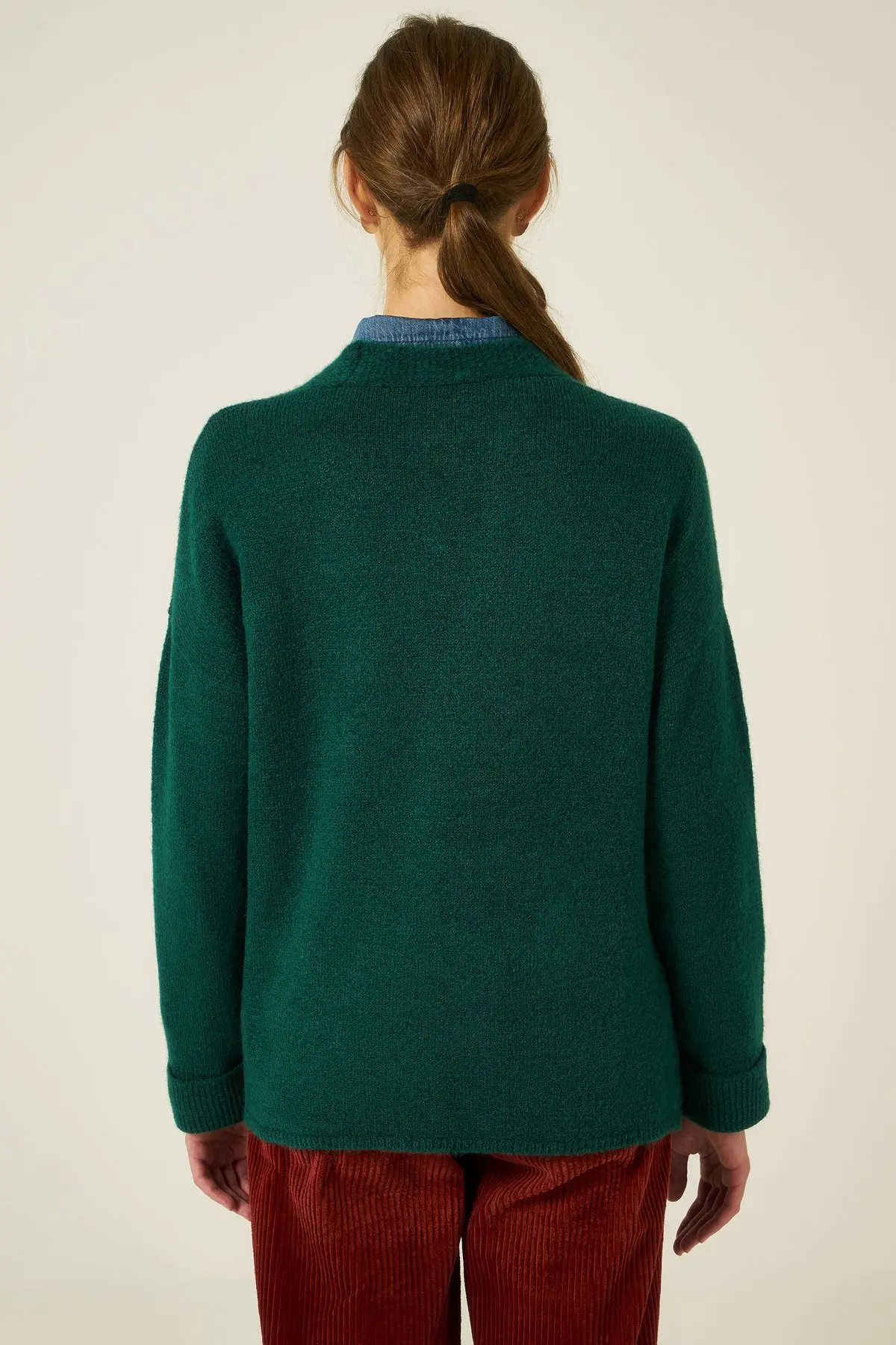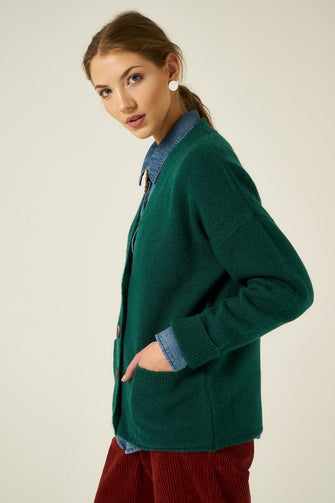 Button Through Knitted Cardigan With Pocket Detail Woman Green
