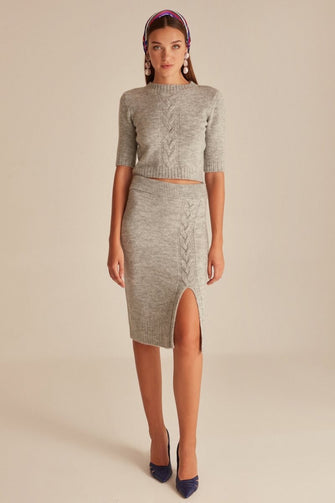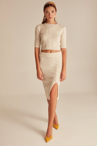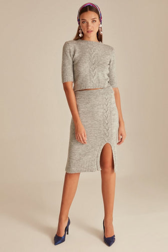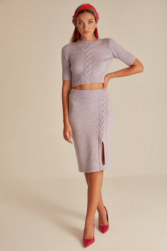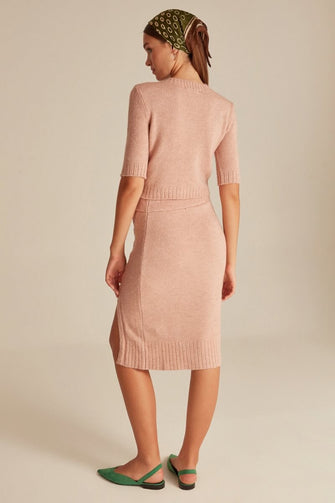 Cable Knit Crew Neck Jumper With 3/4 Sleeve Woman Salmon
