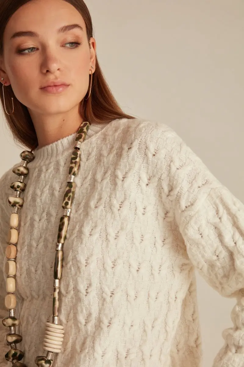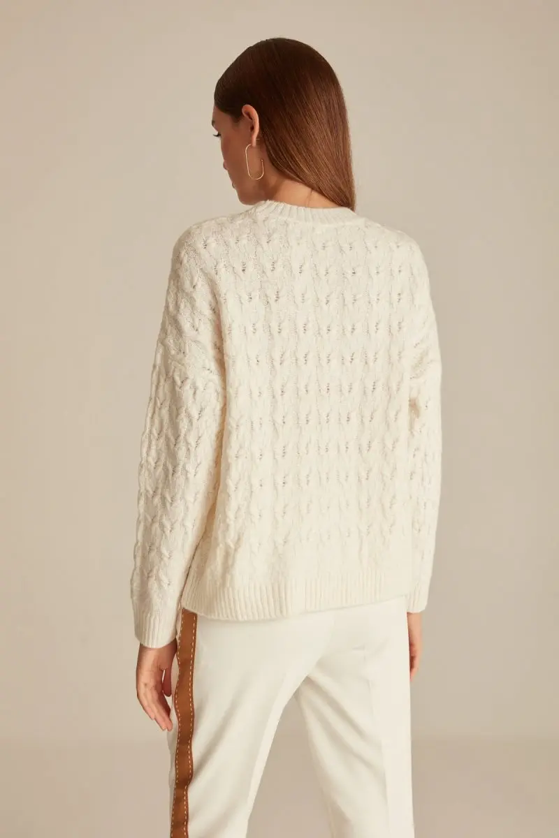 Cable Knit With Jumper Crew Neck Woman Ecru