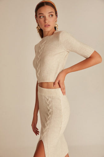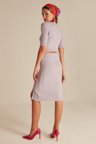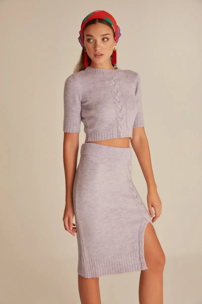 Cable Knitted Skirt With Slit Detail Woman Lilac