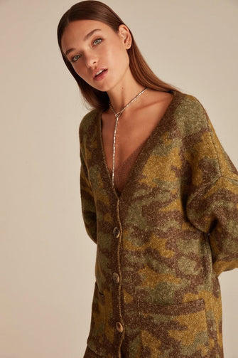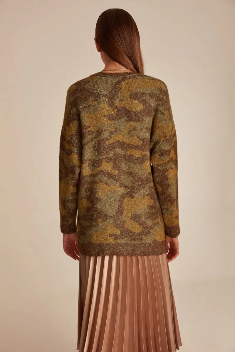 Camouflage Pattern Knitted Cardigan With Button Detail Woman Multi Color
