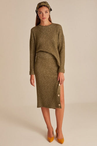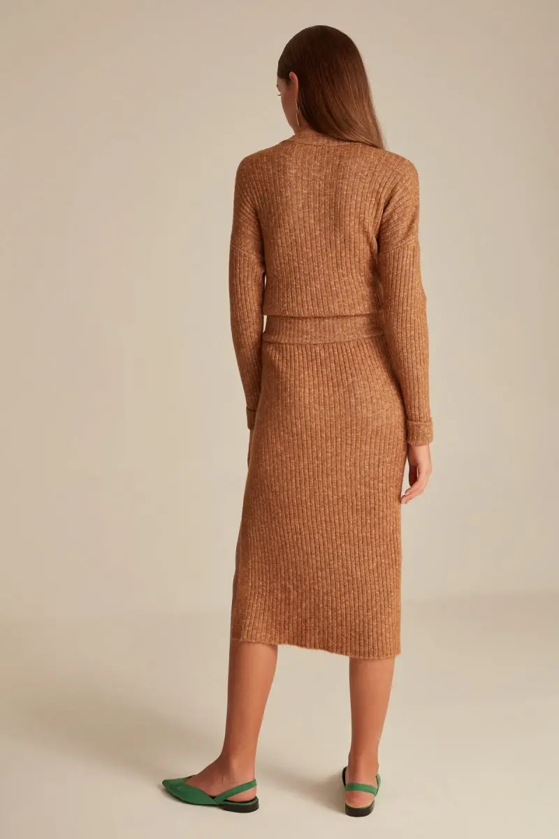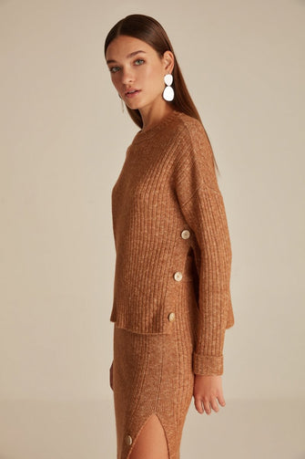 Crew Neck Jumper With Slit And Button Detail Woman Brown