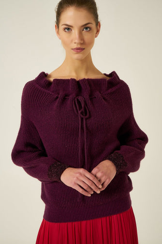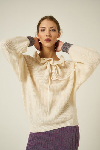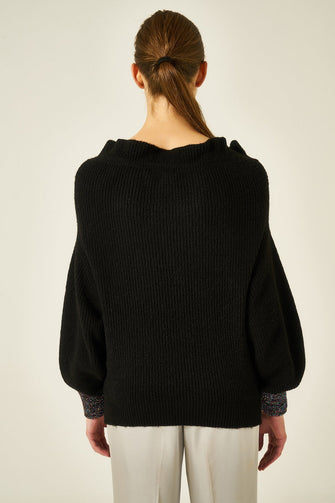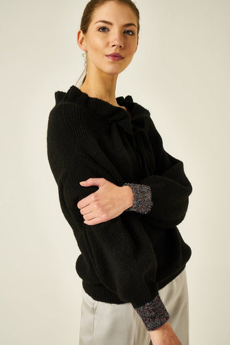 Frill Neck Knitted Jumper With Tie Detail Woman Black