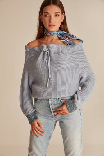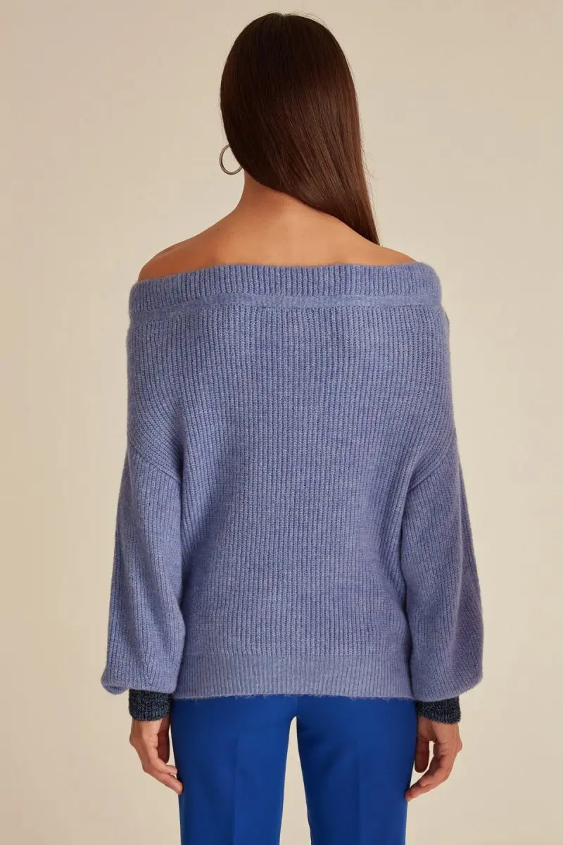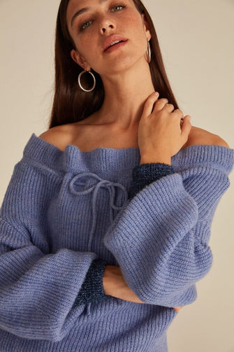 Frill Neck Knitted Jumper With Tie Detail Woman Lilac