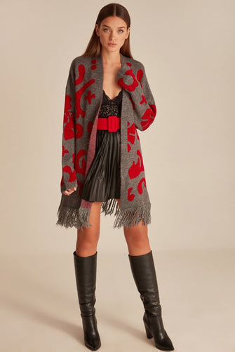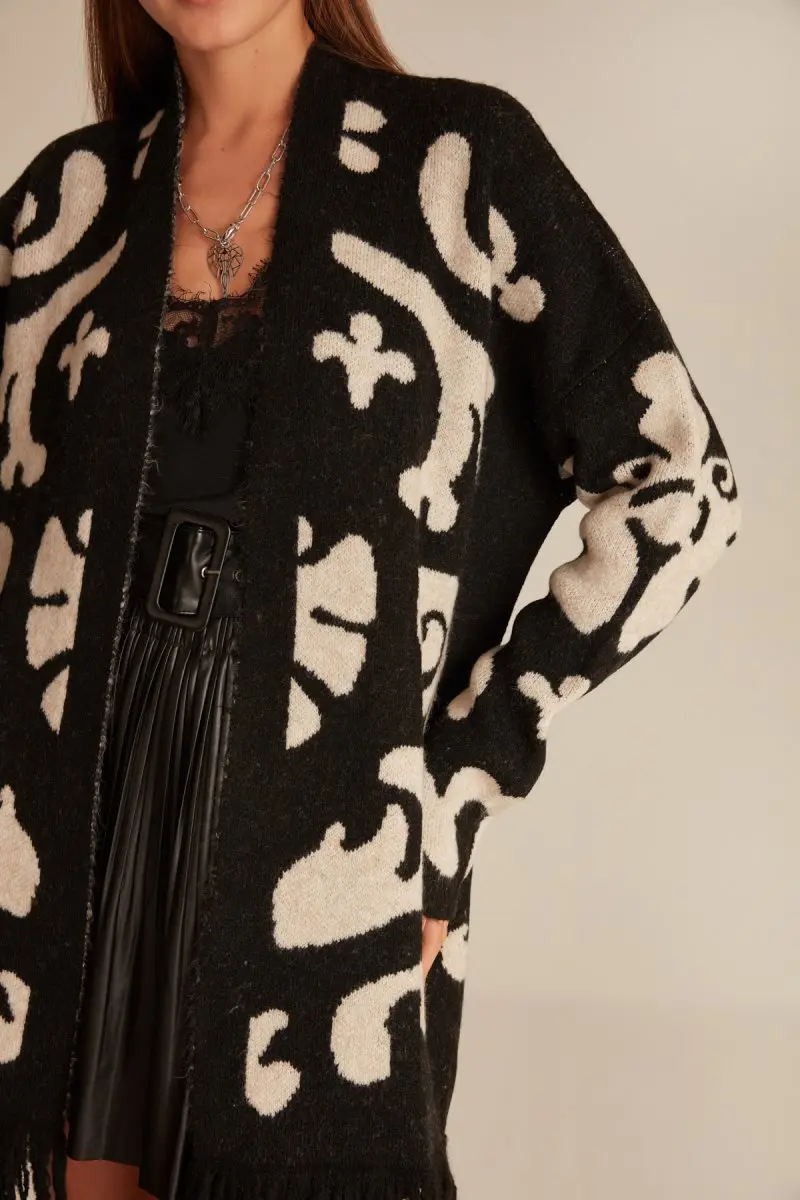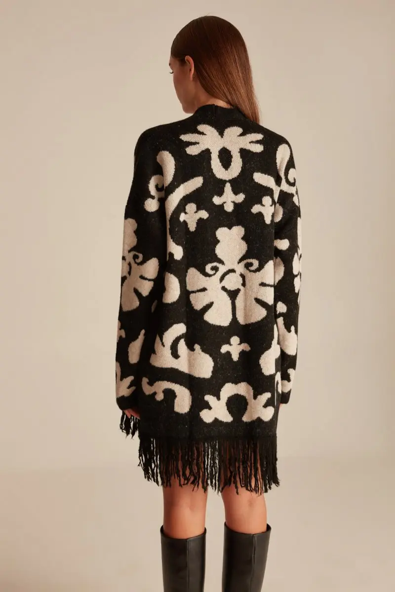 Knitted Cardigan With Tassels Detail Woman Anthracite