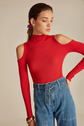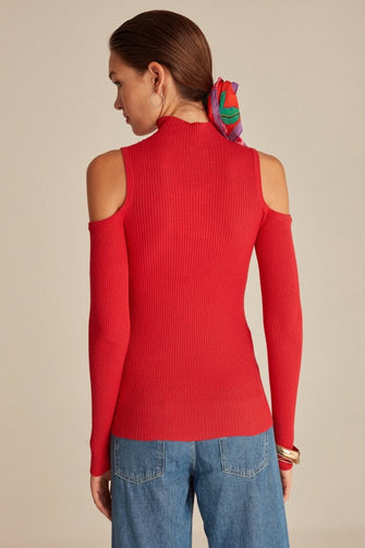 Knitted Jumper With Cold Shoulder Detail Woman Red