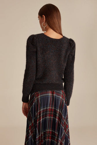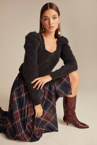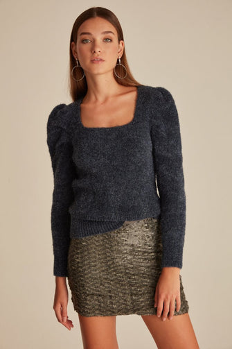 Knitted Scoop Neck Jumper With Puff Sleeves Woman Dark Navy