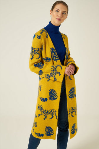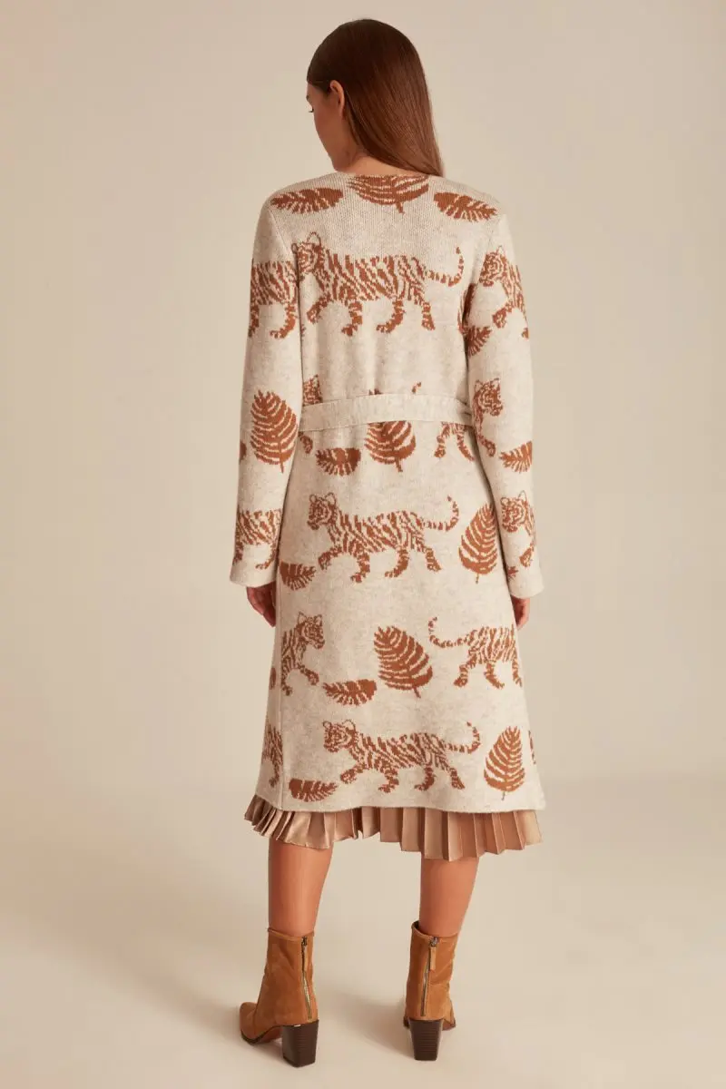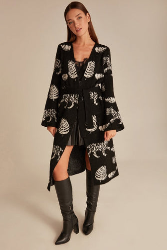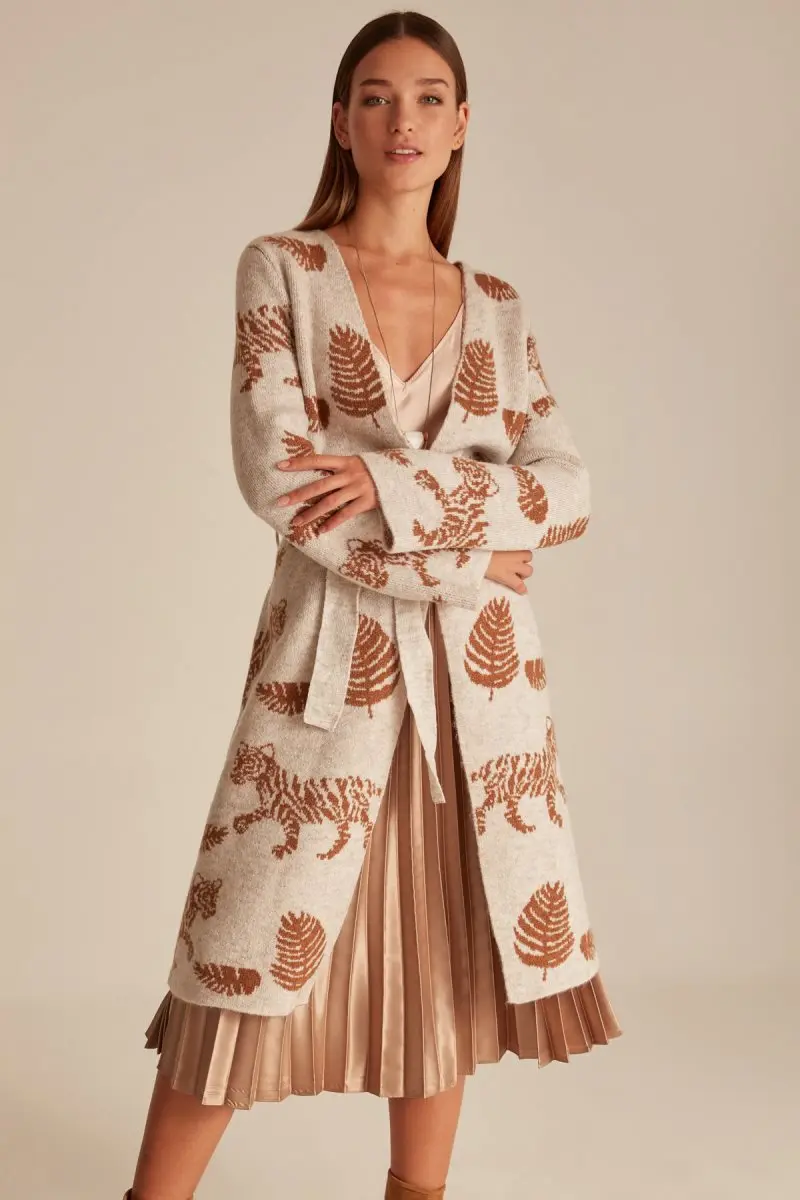 Leaf Pattern Knitted Cardigan With Belt Woman Ecru