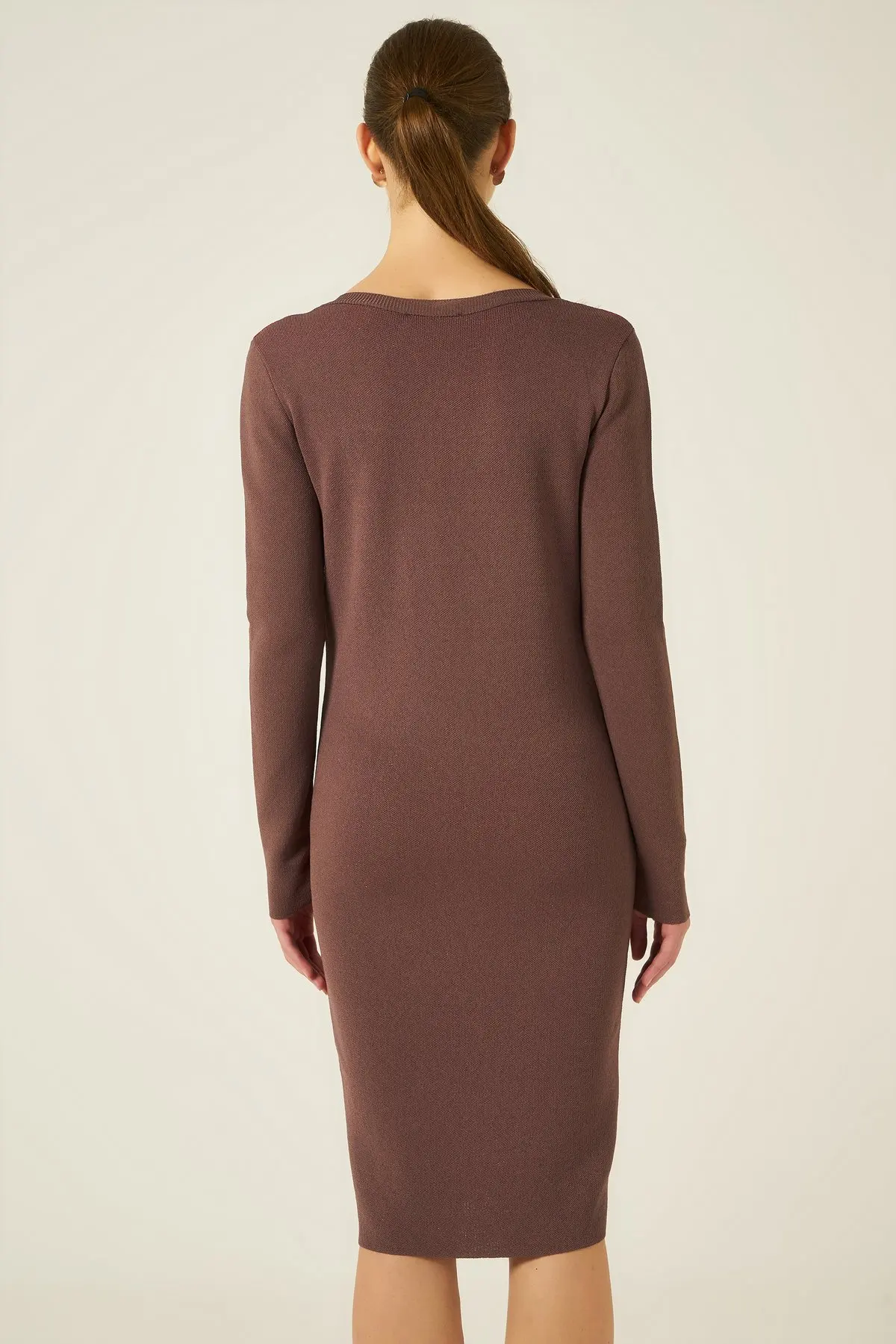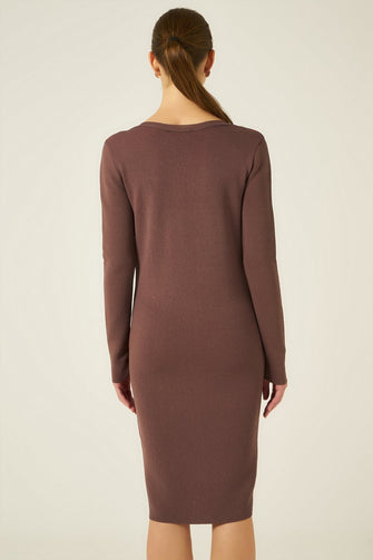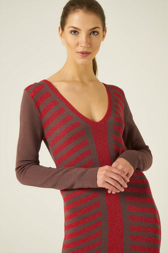 Stripe Knitted Dress With V Neck Woman Brown