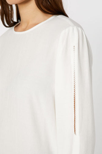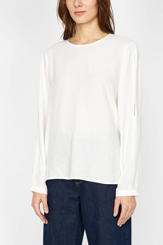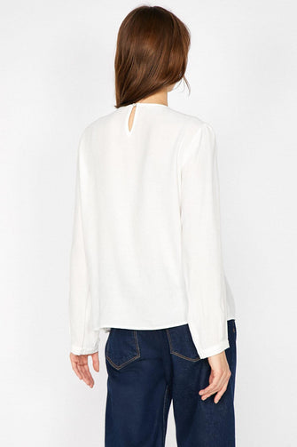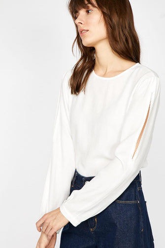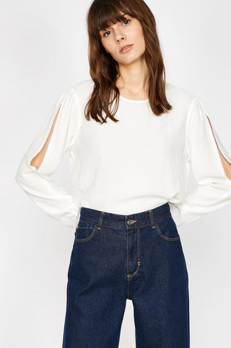 Female Ecru Bicycle Neck Long Sleeve Sleeve Detail Blouse