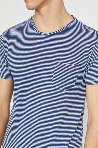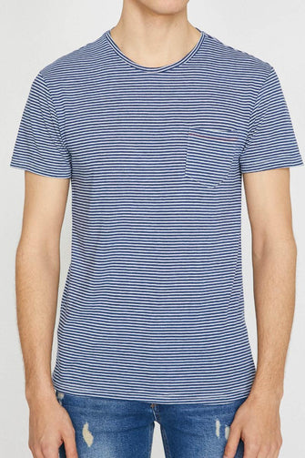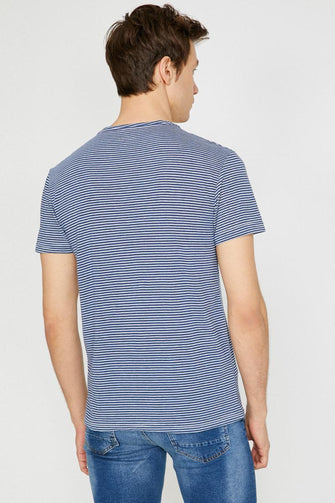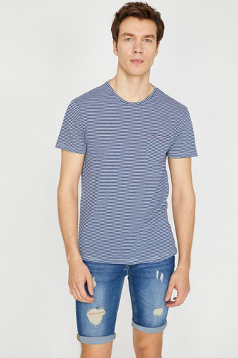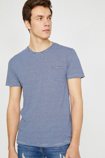 Male Navy Blue Short Sleeve Cycling Collar Pocket Detail T-Shirt