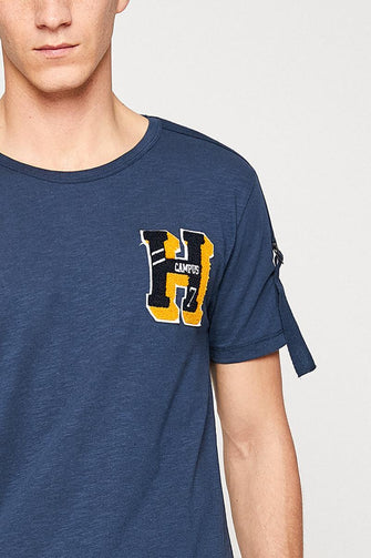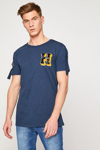 Men Blue Short Sleeve Cycling Neck T Shirt