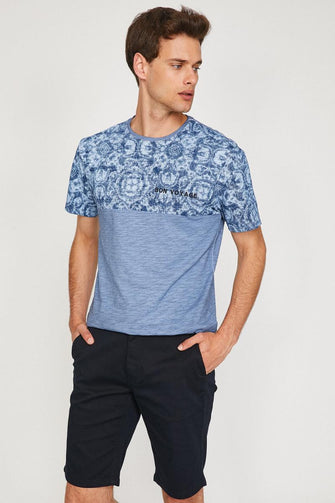 Men Blue Short Sleeve Cycling Neck T Shirt