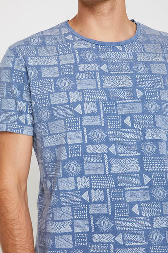 Men Blue Short Sleeve Cycling Neck T Shirt