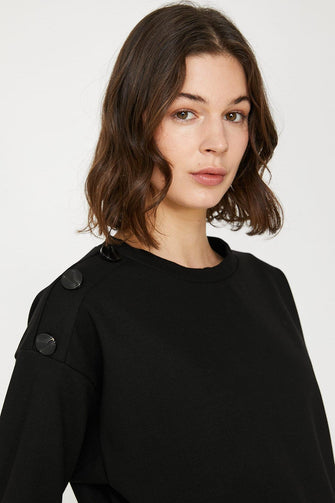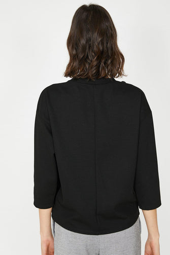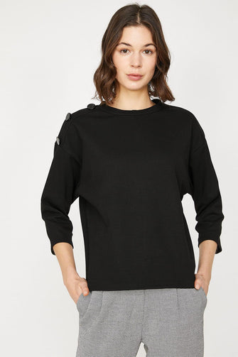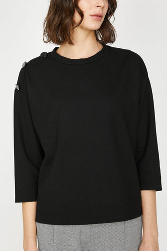 Women Black Bicycle Neck Long Sleeve Button Detail T-Shirt