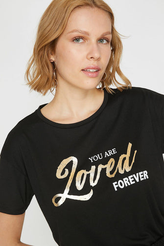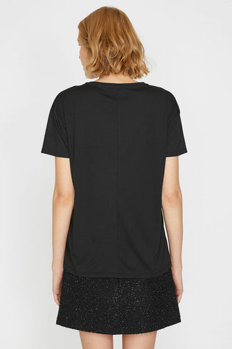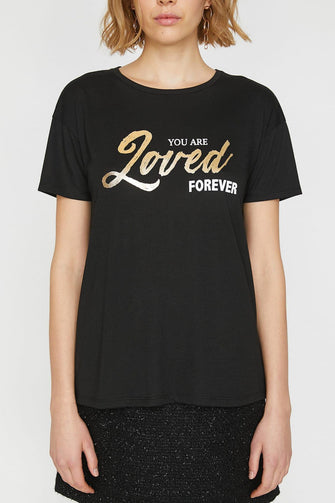 Women Black Bicycle Neck Short-Sleeve T-Shirt