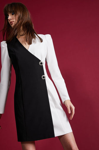 Women Black Button Detail Dress